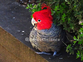 The boys have red heads and the girls are all grey. I never knew that the feathers on the females' bellies are tinted till now. They always look happy too :]